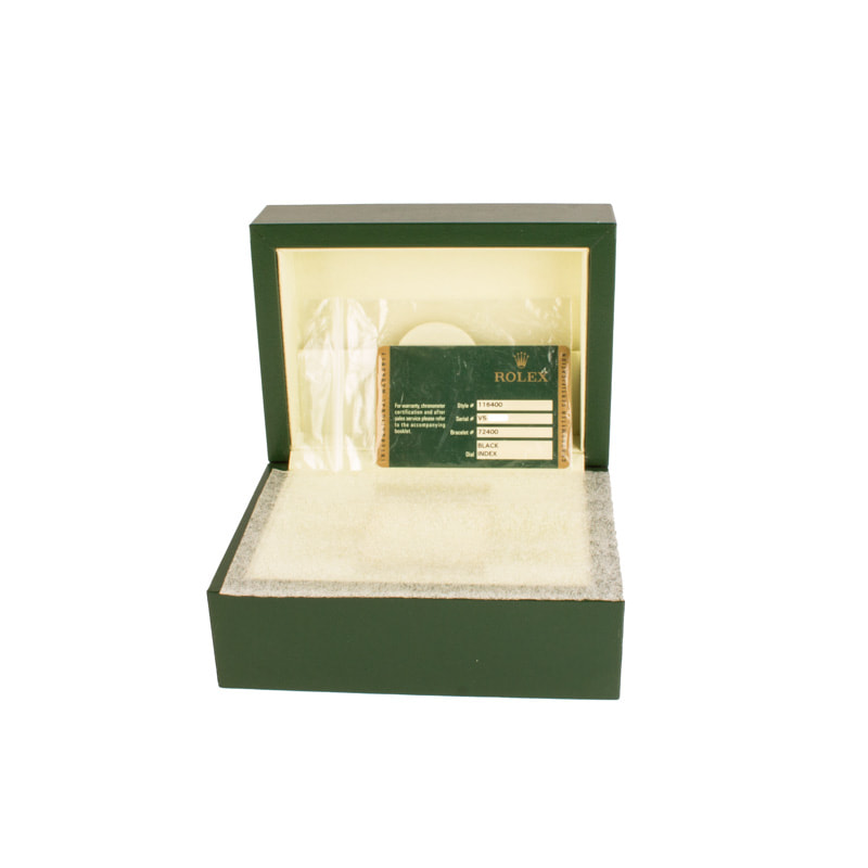This Milgauss from 2008 – 2009 is a truly unique timepiece. The iconic orange accents against the striking black dial give it a bold and distinctive look. Powered by the robust 3131 movement, this watch is built to withstand even the most demanding environments. It’s a testament to Rolex’s innovative spirit and a statement piece for those who appreciate cutting-edge horology.