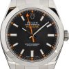 This Rolex Milgauss ref. 116400 (2008 – 2009) features a 40mm stainless steel case with a smooth bezel. The watch is distinguished by its white dial, accented with orange index hour markers and an iconic orange lightning bolt seconds hand. It is paired with an Oyster bracelet and powered by the Rolex Calibre 3131 movement.