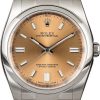 This Rolex Oyster Perpetual ref 116000 (2017) features a 36mm stainless steel case with a smooth bezel, showcasing a vibrant red grape dial with luminous index hour markers. Paired with a stainless steel Oyster bracelet and powered by the reliable Caliber 3130, this model combines bold color with Rolex’s signature precision, durability, and clean, timeless design.