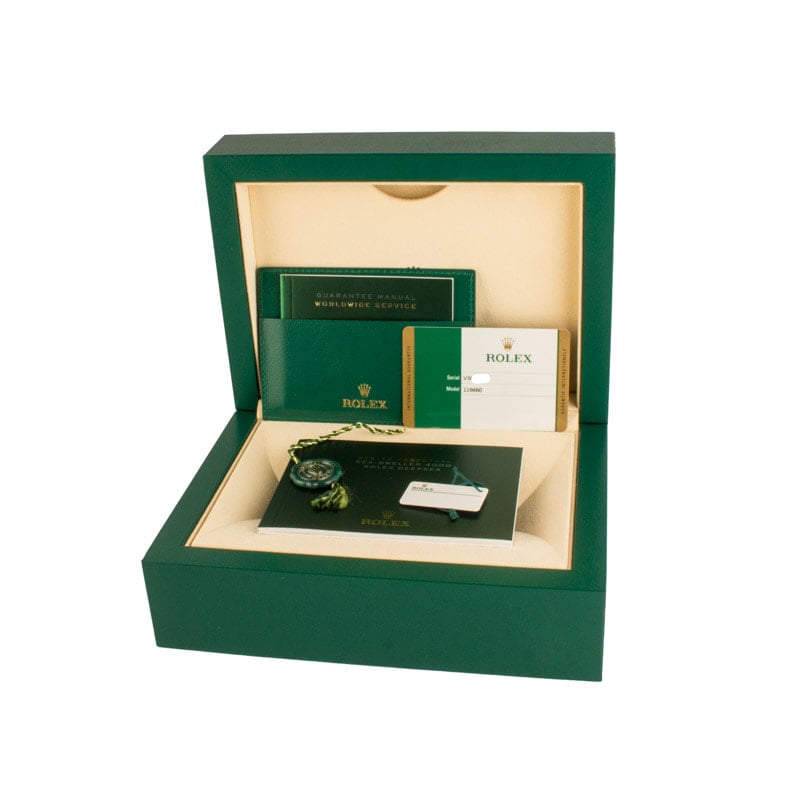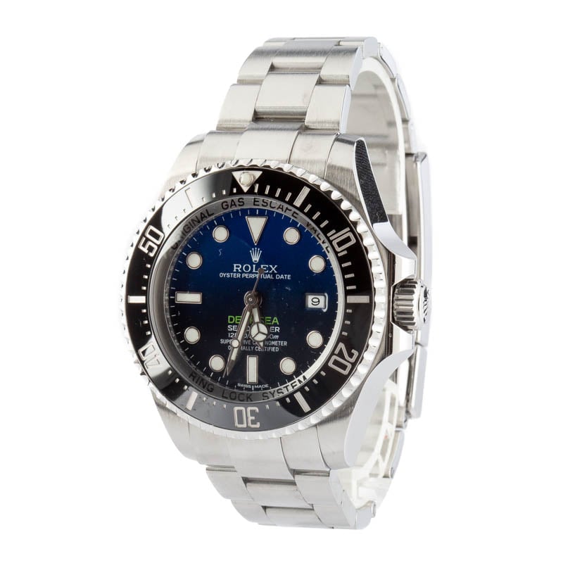 This Rolex Sea-Dweller Deepsea ref. 116660 (2016) is engineered for the most extreme underwater adventures. Its 44mm stainless steel case is paired with a black ceramic timing bezel and a striking blue-to-black “D-Blue” dial for exceptional legibility. Powered by the Caliber 3135 automatic movement, it delivers precise timekeeping and reliable performance. Fitted with an Oyster bracelet and factory-stickered clasp, this Deepsea withstands depths of up to 12,800 feet, combining professional-grade durability with Rolex’s iconic design presence.