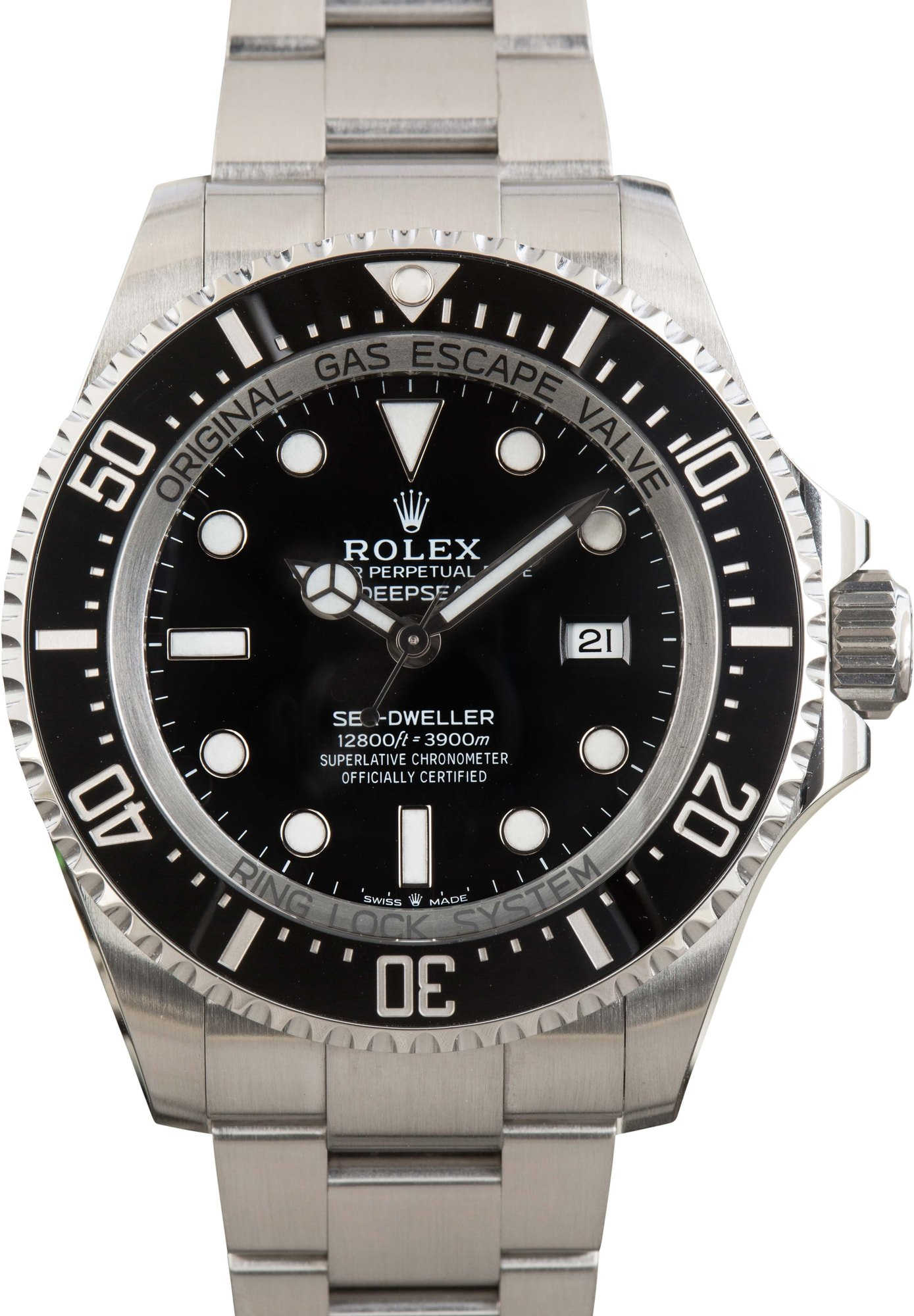 This Rolex Deepsea ref 126660 (2019) features a black Chromalight dial and a black ceramic timing bezel, crafted in stainless steel. It comes with an Oyster bracelet and is powered by the 3235 movement, delivering exceptional performance and durability for deep-sea exploration.