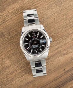 This Rolex Sky-Dweller ref. 326934 (2019) perfectly balances elegance and innovation. Crafted from stainless steel and 18k white gold, this dual-time luxury watch features a sleek black dial that contrasts beautifully with the fluted white gold bezel. Powered by Rolex’s advanced Caliber 9001, the Sky-Dweller delivers an annual calendar with Saros system and an intuitive dual-time display designed for global travelers who demand both style and function. With its Oyster bracelet and 42mm case, this timepiece commands presence on the wrist while offering Rolex’s signature precision and robustness.