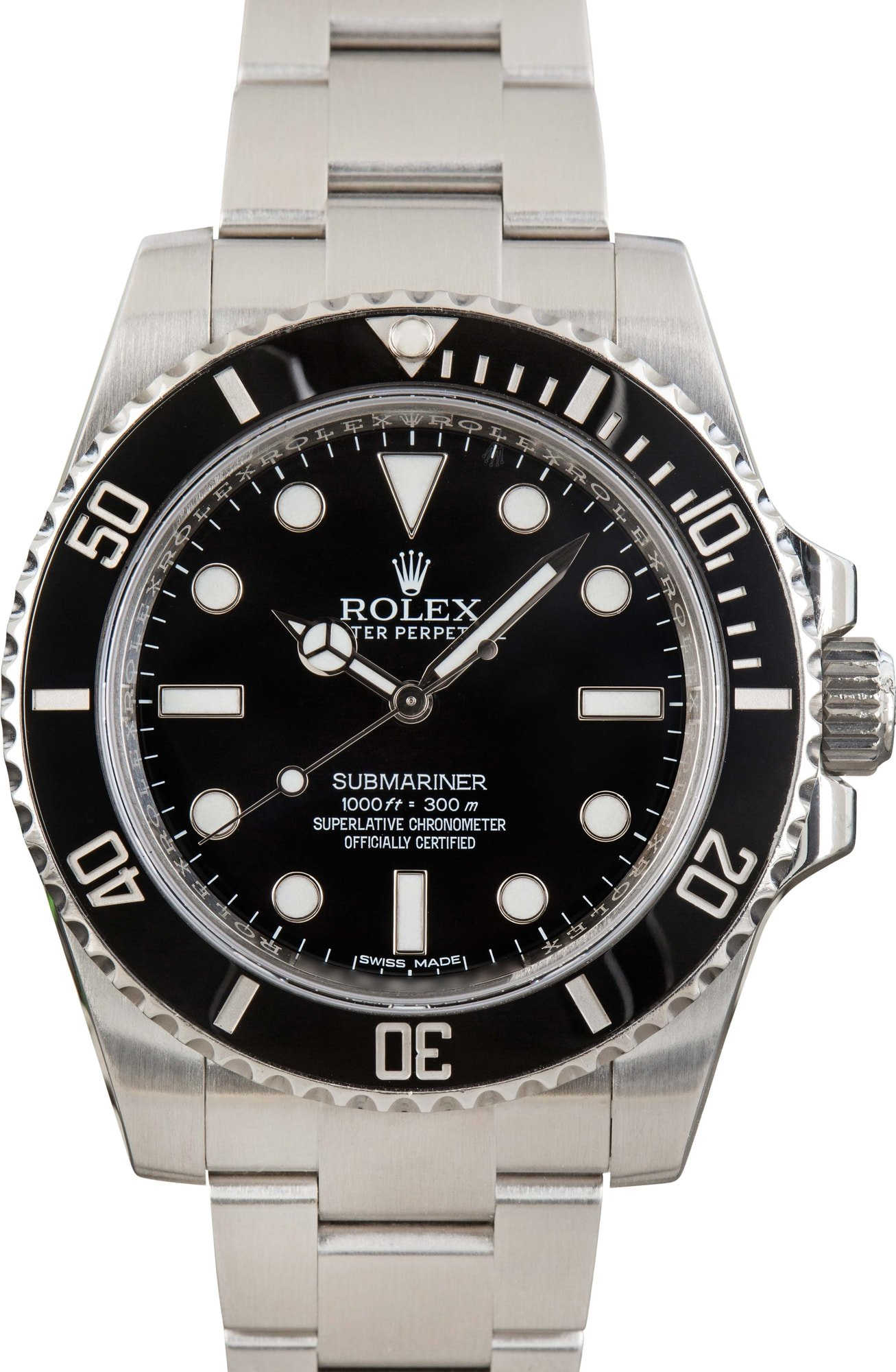This Rolex Submariner ref. 114060 (2016) is pure tool-watch heritage refined for the modern era. Its 40mm Oystersteel case is built for endurance, paired with a black Cerachrom timing bezel and matching black dial that radiate strength and precision. Chromalight lume delivers a bold blue glow that cuts through the dark, while the brushed Oyster bracelet with solid end links and Glidelock clasp ensures a secure, custom fit. Driven by the COSC-certified Caliber 3130, this no-date Submariner embodies Rolex’s core DNA—uncompromising performance, perfect symmetry, and timeless design.