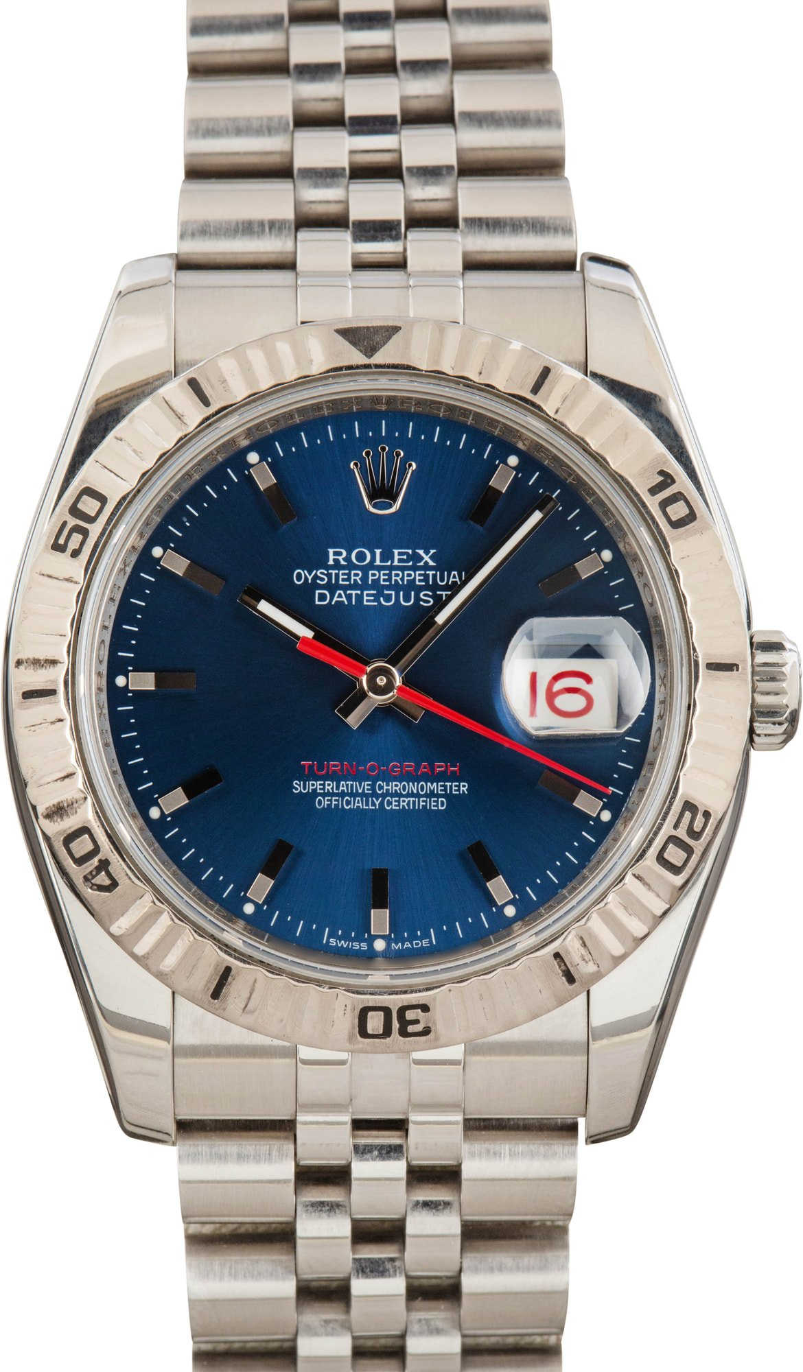 This Rolex Datejust ref. 116264 (2003–2005) features a 36mm stainless steel case with an 18k white gold Turn-O-Graph bezel, blending sport and sophistication. The blue index dial offers a clean, modern look, while the Jubilee bracelet adds comfort and classic appeal. Powered by the Caliber 3135 automatic movement, this Datejust delivers reliable precision and timeless Rolex craftsmanship.