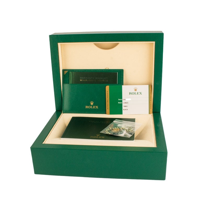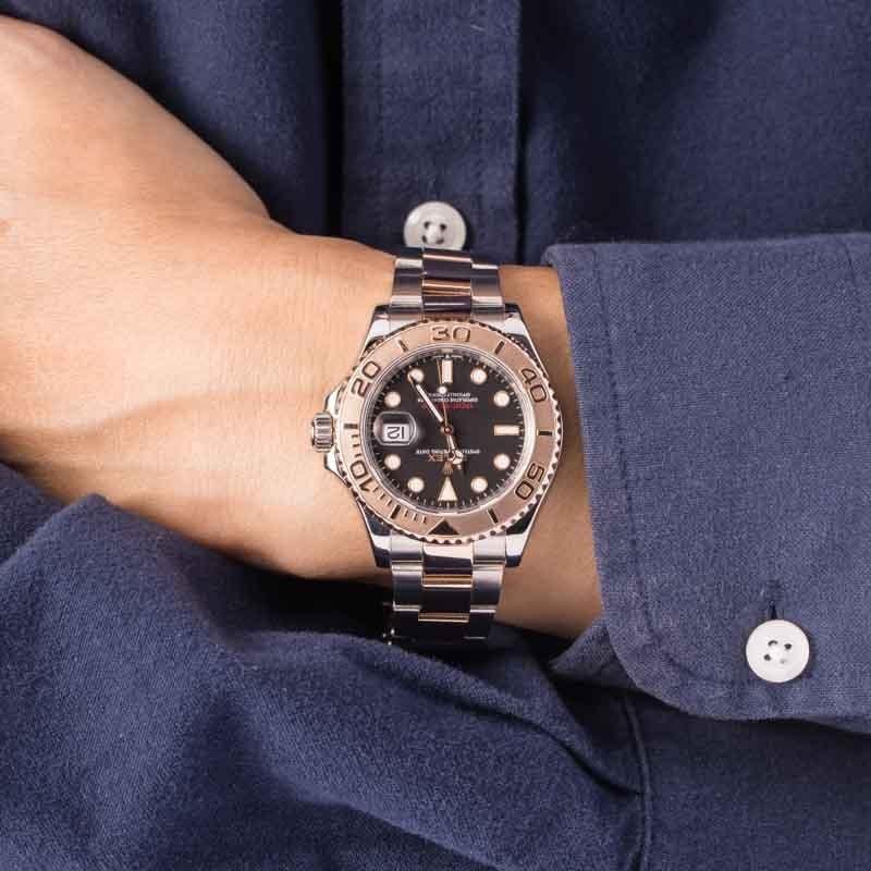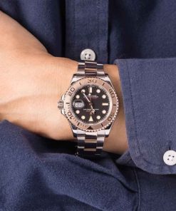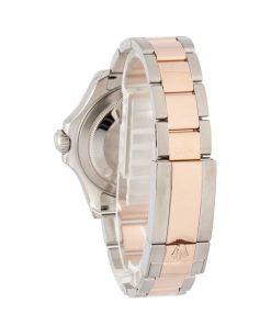 Rolex Yacht-Master 40 ref. 126621 (2020) dazzles with a bold black dial set within a luxurious two-tone case of Oystersteel and 18k Everose gold. Its 40mm case, paired with a comfortable Oyster bracelet and bidirectional Everose gold bezel, merges sporty functionality with refined elegance. Powered by the Caliber 3235 with a 70-hour power reserve, it effortlessly transitions from everyday wear to nautical adventures.