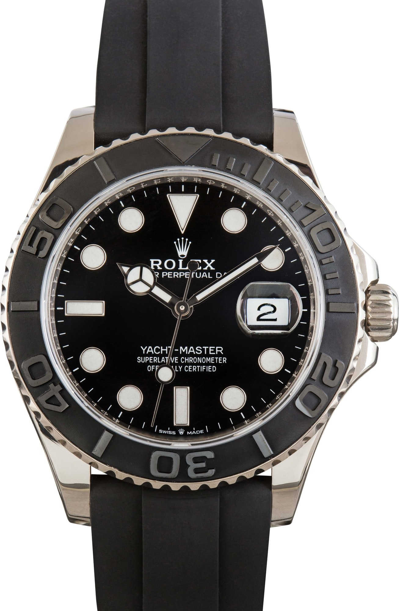 This Rolex Yacht-Master ref. 226659 from 2021 combines the elegance of 18k white gold with the rugged versatility of a 42mm case and black Cerachrom bezel. Paired with a sleek Oysterflex bracelet and powered by the high-performance Caliber 3235 movement, this watch delivers cutting-edge Rolex precision with a bold, nautical edge. A luxury sports watch that feels just as comfortable on a yacht deck as it does in the city.