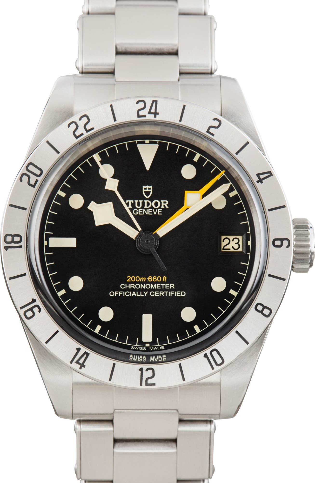 Case Material: Stainless Steel Crystal: Sapphire Size: 39MM Bezel: Stainless Steel 24-hour Caseback: Solid Serial: L2W2XXX Dial: Black w/ Luminous hour markers, Luminous Snowflake hands & Luminous lume