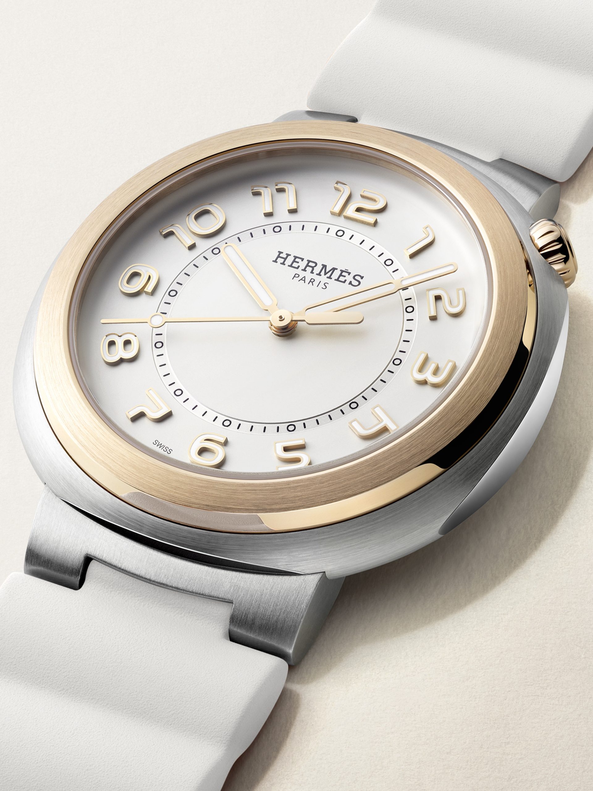 Whether in all steel or a two-tone combination with rose gold, with or without diamonds, the Hermès Cut watch oozes versatility and timeless appeal.