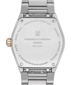 The lineup includes two models with gold-plated accents: pink gold with a mother-of-pearl dial and yellow gold paired with a navy sunburst dial. Three all-steel designs feature beige, light blue, or navy sunburst dials with eight diamond markers. All dials have a radiant sunburst finish for an eye-catching play of light and shadow. Frederique Constant’s commitment to detail shines through in every detail, from hand-polished hands to durable 5 ATM water resistance.