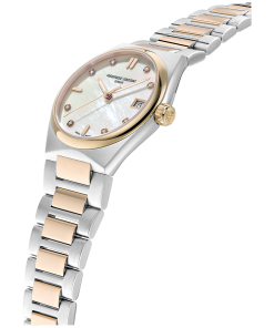 Frederique Constant expands its iconic Highlife collection with five new ladies’ quartz models featuring a sleek 31mm diameter and a slim 7.29mm profile. Powered by the FC-240 quartz calibre, these timepieces deliver precision with an impressive 5-year battery life. The collection includes luxurious designs, such as a mother-of-pearl dial and sunburst dials paired with steel or steel and gold-plated cases, with diamond-set hour markers and luminous markers.