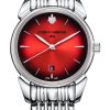 The Cuervo y Sobrinos Historiador Asturias collection is powered by the CYS 5124 caliber, an automatic Swiss movement based on the La Joux-Perret G-100 with a remarkable 68-hour power reserve. The polished 40 mm stainless steel case comes in a dial choice of red, green, blue, or gray and either a matching steel bracelet or a black leather strap.