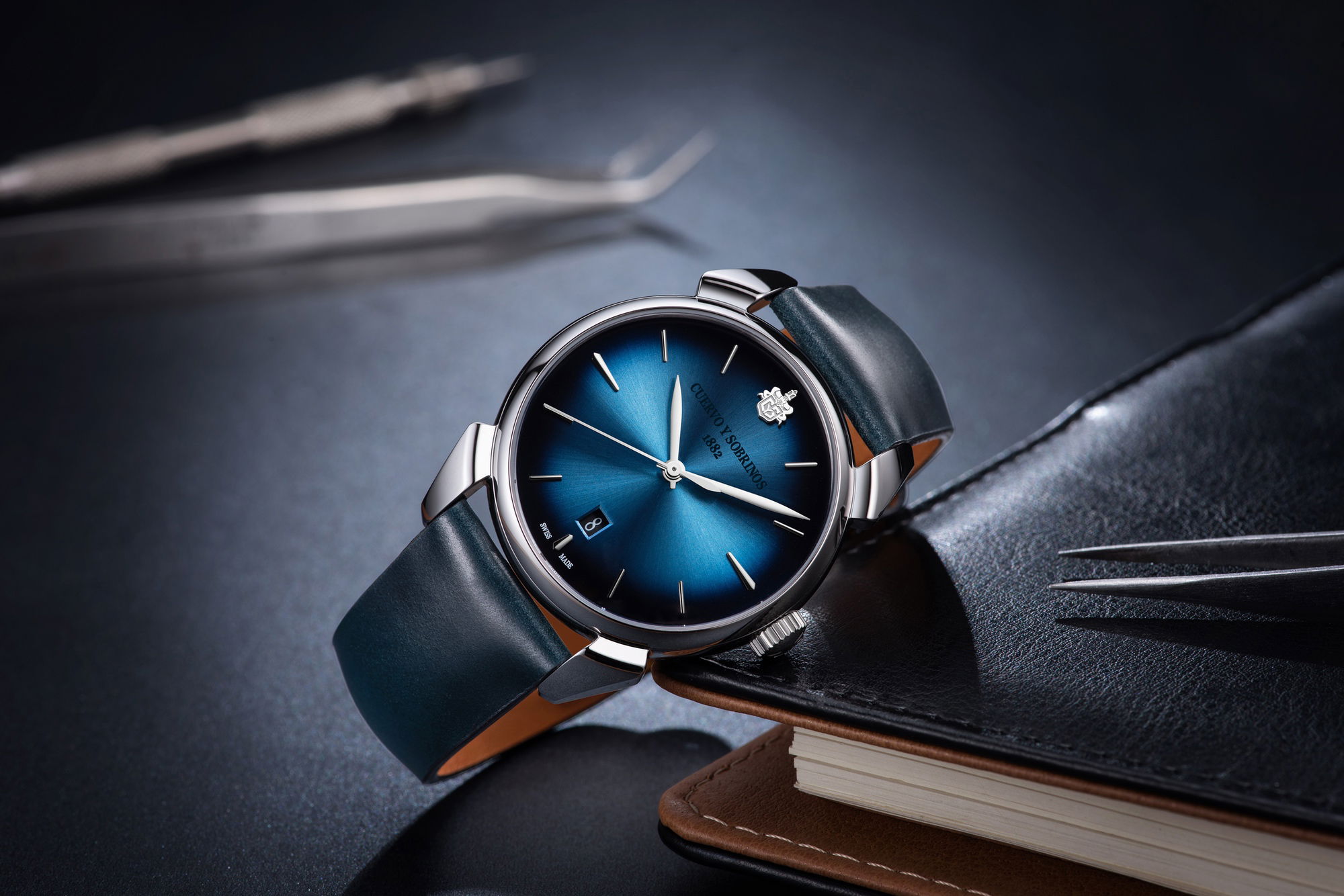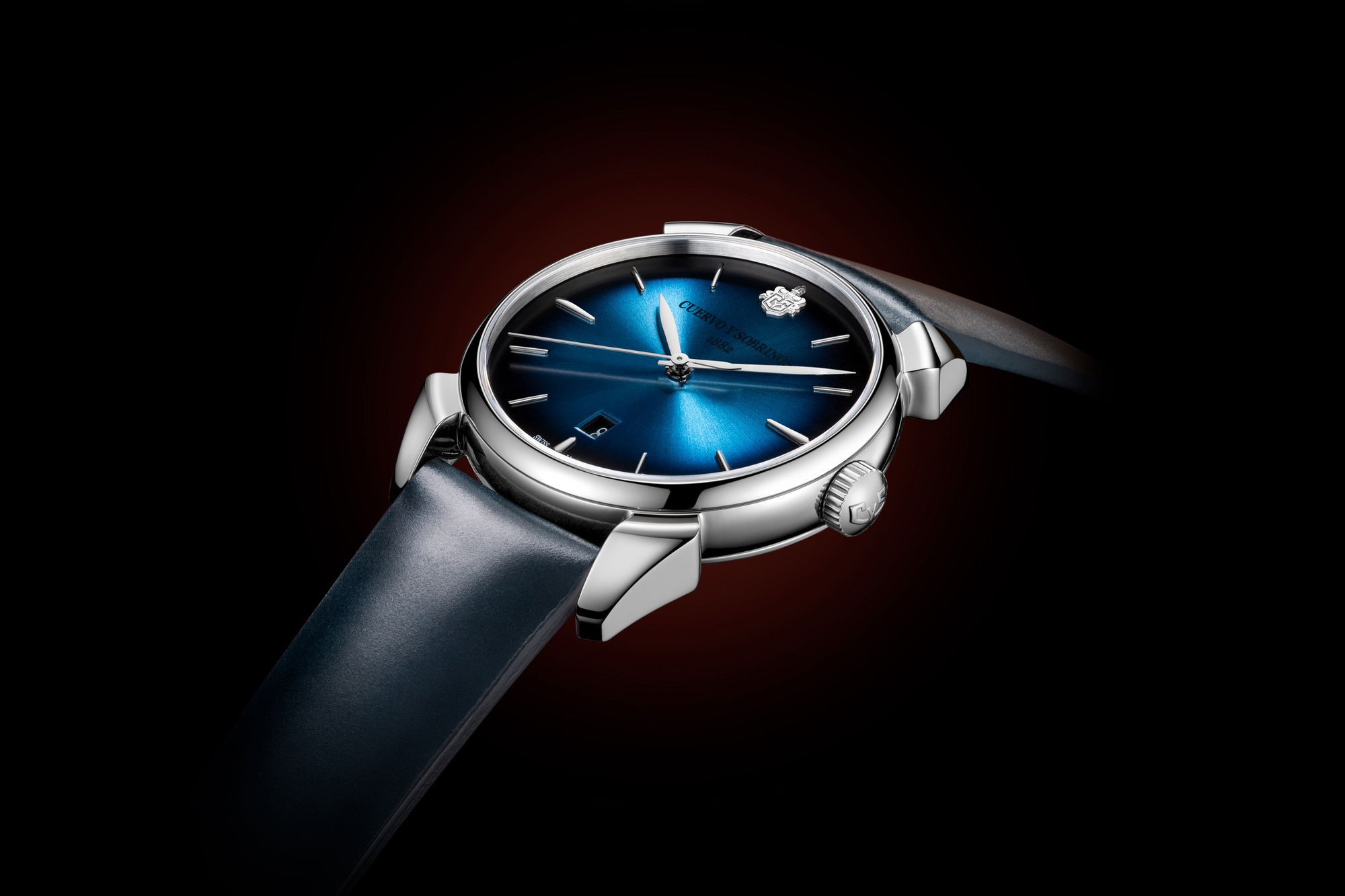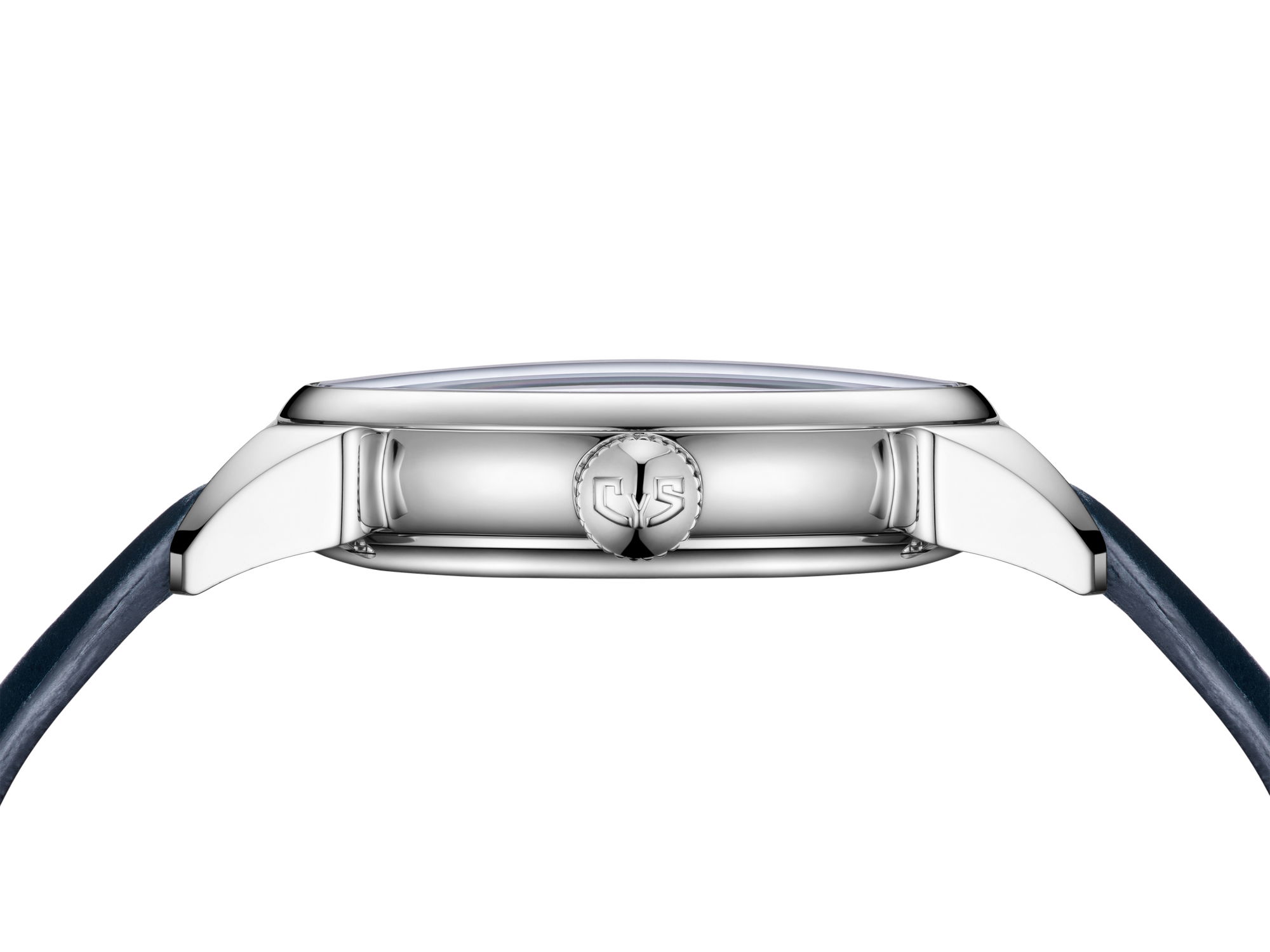 The Cuervo y Sobrinos Historiador Asturias collection is powered by the CYS 5124 caliber, an automatic Swiss movement based on the La Joux-Perret G-100 with a remarkable 68-hour power reserve. The polished 40 mm stainless steel case comes in a dial choice of red, green, blue, or gray and either a matching steel bracelet or a black leather strap.