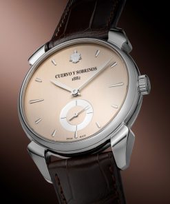 There is a choice between a matte chocolate Louisiana alligator strap for a classic finish or a stainless steel bracelet. With its restrained updates and limited availability, this Historiador Asturias Pequeños Segundos edition reinforces Cuervo y Sobrinos’ dedication to low-volume craftsmanship and timeless design.