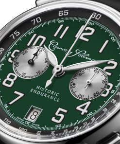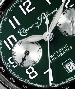 Cuervo y Sobrinos, the Official Timekeeper of Iberian Historic Endurance, has introduced a limited-edition chronograph known as the Historiador Historic Endurance. This watch features a bicompax dial in British Racing Green with contrasting silver-toned counters, reminiscent of motorsport colors. It is encased in a 40mm stainless steel case, designed to accommodate various wrist sizes.
