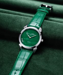 For the strap, you have the choice of a glossy Louisiana alligator strap or a perfectly matched bracelet. The Historiador Primera Dama is the CyS 1005 quartz movement, ensuring precision and reliability, eliminating the need for winding.