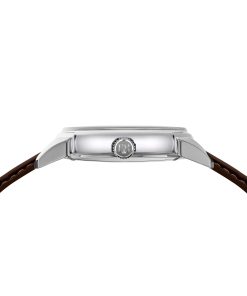 The newly sculpted glass-box case reinterprets the vintage elegance of the Historiador collection through modern dimensions and refined ergonomics. Polished stainless steel curves flow seamlessly around the wrist, while the transparent caseback reveals the Soprod Newton calibre, a high performance automatic movement, individually numbered and now officially COSC-certified.