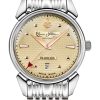 The new Historiador Tradición ‘San Rafael’ pays homage to the 1950s Tradition but with modern updates. It comes in three versions: Champagne, silver, and a new burgundy color for 2024. The dial keeps the grid pattern and red seconds hand but replaces Arabic numerals with the Cuervo y Sobrinos emblem.