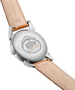 The stainless steel case is 40mm, comfortable for today’s wearers, and the back features an engraving of the brand’s old boutique in Havana. The watch runs on a Swiss automatic movement with a 38-hour power reserve.