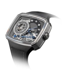 Made from grade 5 titanium, the HLXX’s case maintains the iconic TV silhouette while receiving modern updates. With dimensions of 37.0 x 45.0 x 11.75 mm, it features a water resistance of 10 ATM and integrates a quick-release strap system. The dial captivates with its deconstructed layout, showcasing the jumping hour and retrograde minutes in distinct zones illuminated by Super-LumiNova®.