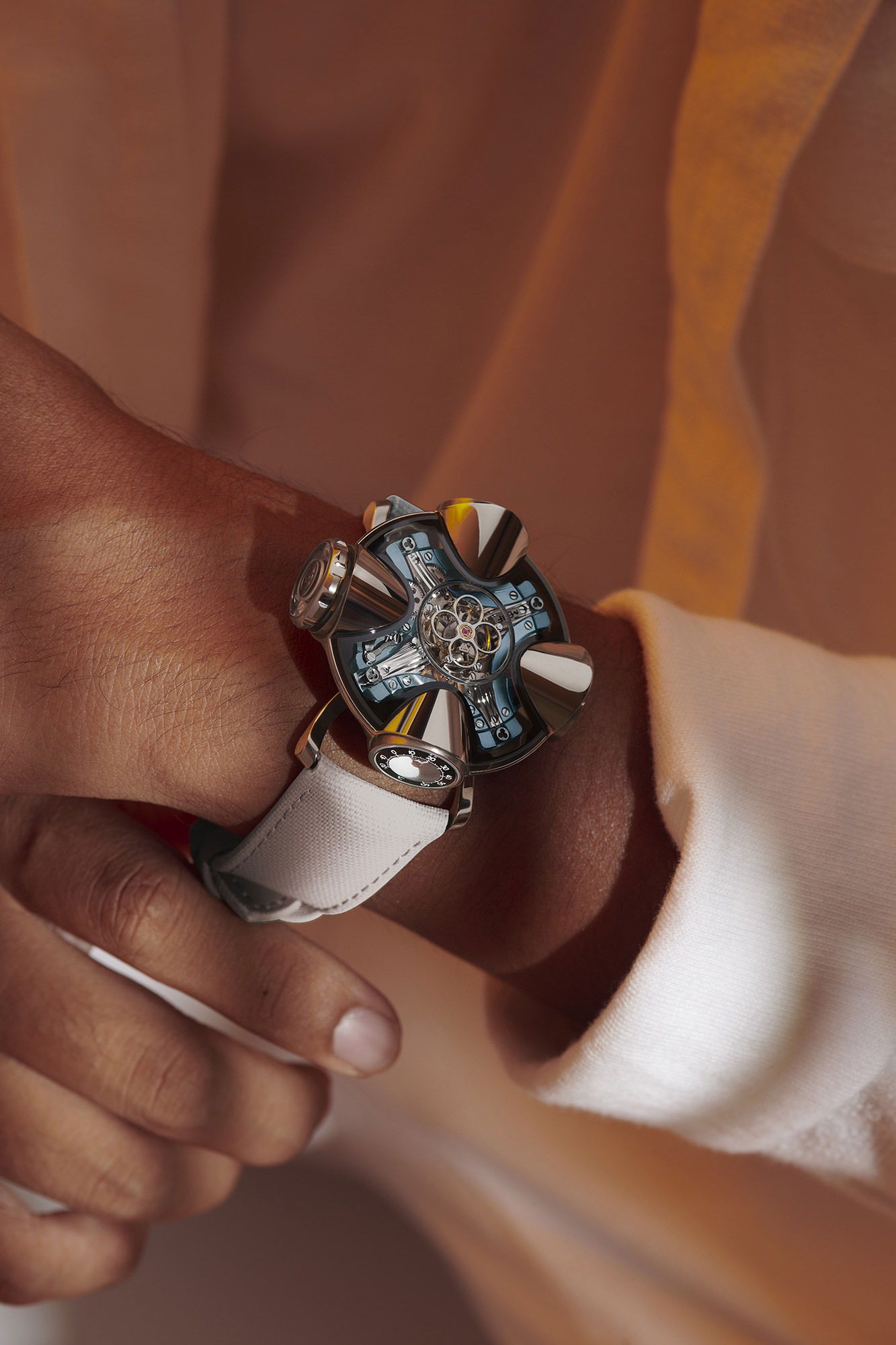 More than a watch, the HM11 is an architectural marvel at the scale of the wrist. It respects the form of the human body and the mechanics of human perception, all while pushing the boundaries of what a timepiece can be. The HM11 is a limited edition of 50 pieces, with 25 in each color variant, and is a wearable piece of architecture that encapsulates the essence of MB&F’s creative vision.
