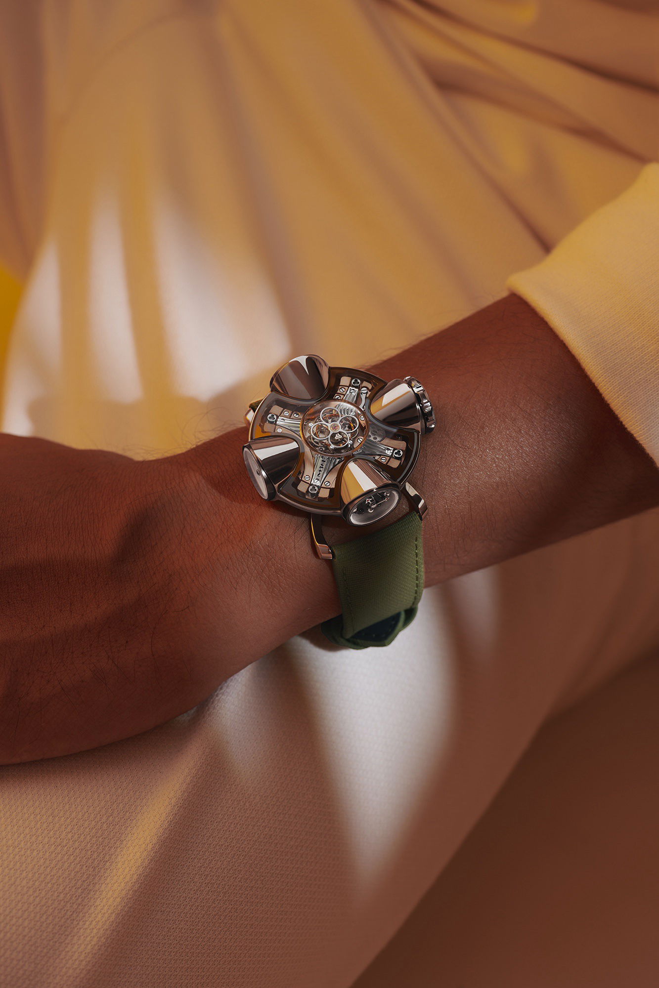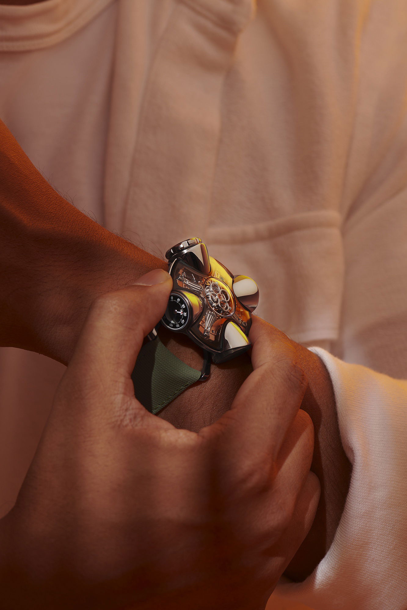 More than a watch, the HM11 is an architectural marvel at the scale of the wrist. It respects the form of the human body and the mechanics of human perception, all while pushing the boundaries of what a timepiece can be. The HM11 is a limited edition of 50 pieces, with 25 in each color variant, and is a wearable piece of architecture that encapsulates the essence of MB&F’s creative vision.