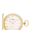 Heir to a centuries-old tradition, this hunter-style pocket watch is distinguished by its winding crown at 3 o’clock and its two hinged covers on the dial and case-back sides. The shimmer of white gold on the case, applied numerals and hands beautifully match the tone of the silvery dial with vertical satin-finish.