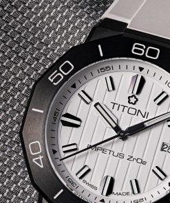 Introducing the TITONI Impetus CeramTech Watch. This timepiece showcases the elegance of handcrafted precision, paired with the resilience of high-tech ceramic – a material celebrated for its lightweight nature and hypoallergenic properties. This watch promises not just a captivating design with vibrant color themes but also boasts unmatched scratch resistance.