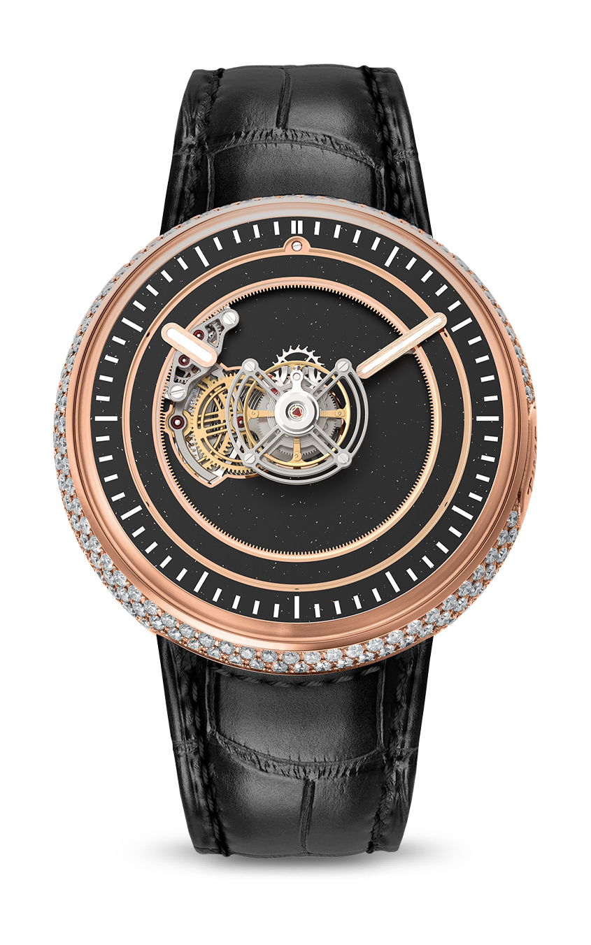 Available in Grade 5 titanium or a striking version in 18-karat red gold, both offer the option of being set with 281 pavé-set diamonds, totaling around 5.09 carats. Each variation is limited to 10 numbered pieces, ensuring every watch becomes a unique and exclusive masterpiece.