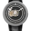 The Grade 5 titanium case is seamlessly designed, with a hidden D-ring crown and a one-click interchangeable strap system. The domed crystal provides a panoramic view of the movement with anti-reflective, anti-UV, and anti-static treatments. The collection offers various dial variations, such as aventurine glass or natural stones, each serving to enhance legibility and showcase the tourbillon.