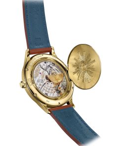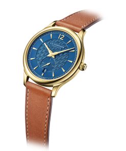 The Chopard L.U.C XPS 1860 Officer Vendôme One is a distinctive blue timepiece that portrays French-style elegance. Chopard celebrated the reopening of its Paris boutique with this exclusive watch, which pays tribute to 1 Place Vendôme. The watch, available in an eight-piece limited edition, features a 40 mm-diameter case made in ethical 18-carat gold, with a guilloché dial and an officer-type case back with a hinged cover. When the crown is pressed, the cover opens to reveal a sapphire case back, held in place by an ingenious spring system.