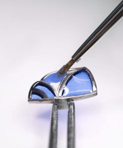 The façonné enamel involves sculpting enamel on a stainless-steel base, firing it at low and then high temperatures to achieve a smooth, luminous finish. The setting in enamel technique sets precious stones in plique-à-jour enamel without metal, creating a floating effect. This watch exemplifies Van Cleef & Arpels’ ingenuity and renowned artistry.