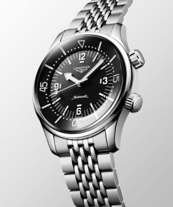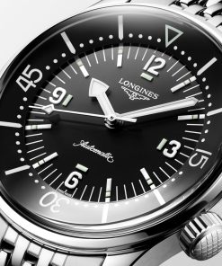 The Longines Legend Diver, a notable diver’s watch, has been thoroughly updated. It now features a 39 mm diameter case, mirroring the design of the original 1959 model. This tool-watch, suitable for underwater exploration, comes with either a black or blue lacquered dial.