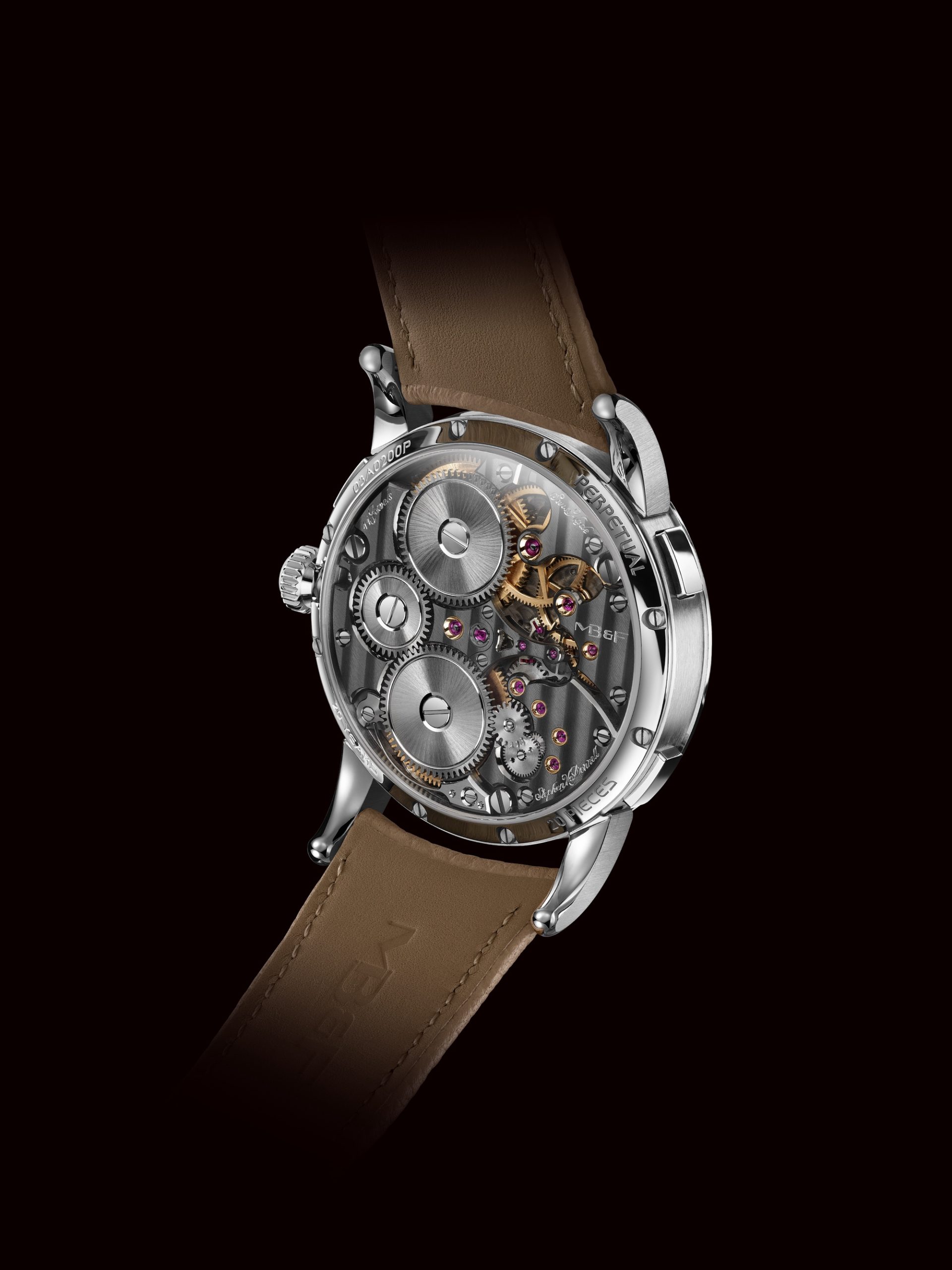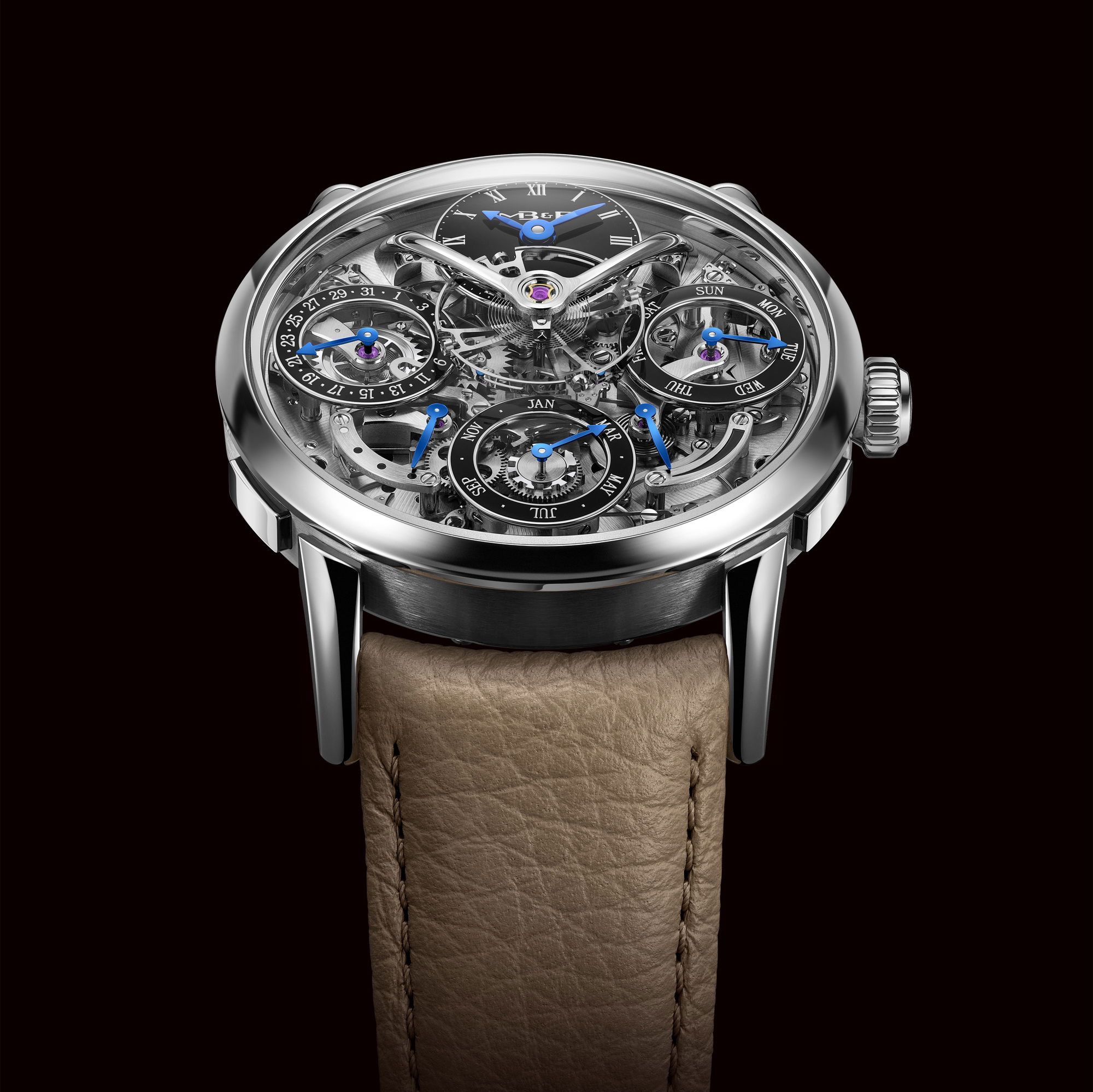 The newly launched LM Perpetual Longhorn is the first model in this series, incorporating MB&F’s award-winning perpetual calendar, which was introduced in 2015. Developed in partnership with watchmaker Stephen McDonnell, the 581-component movement overcomes the typical issues of perpetual calendars, such as skipped dates or jammed gears. McDonnell’s innovative “mechanical processor” ensures a seamless operation by deactivating the adjuster pushers during calendar transitions.