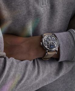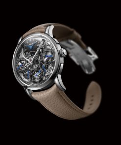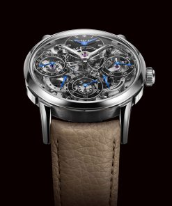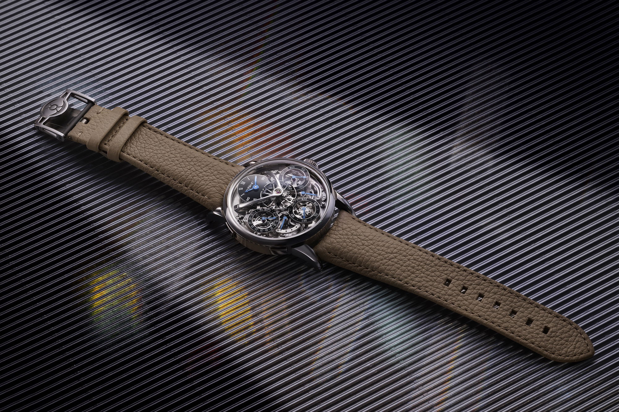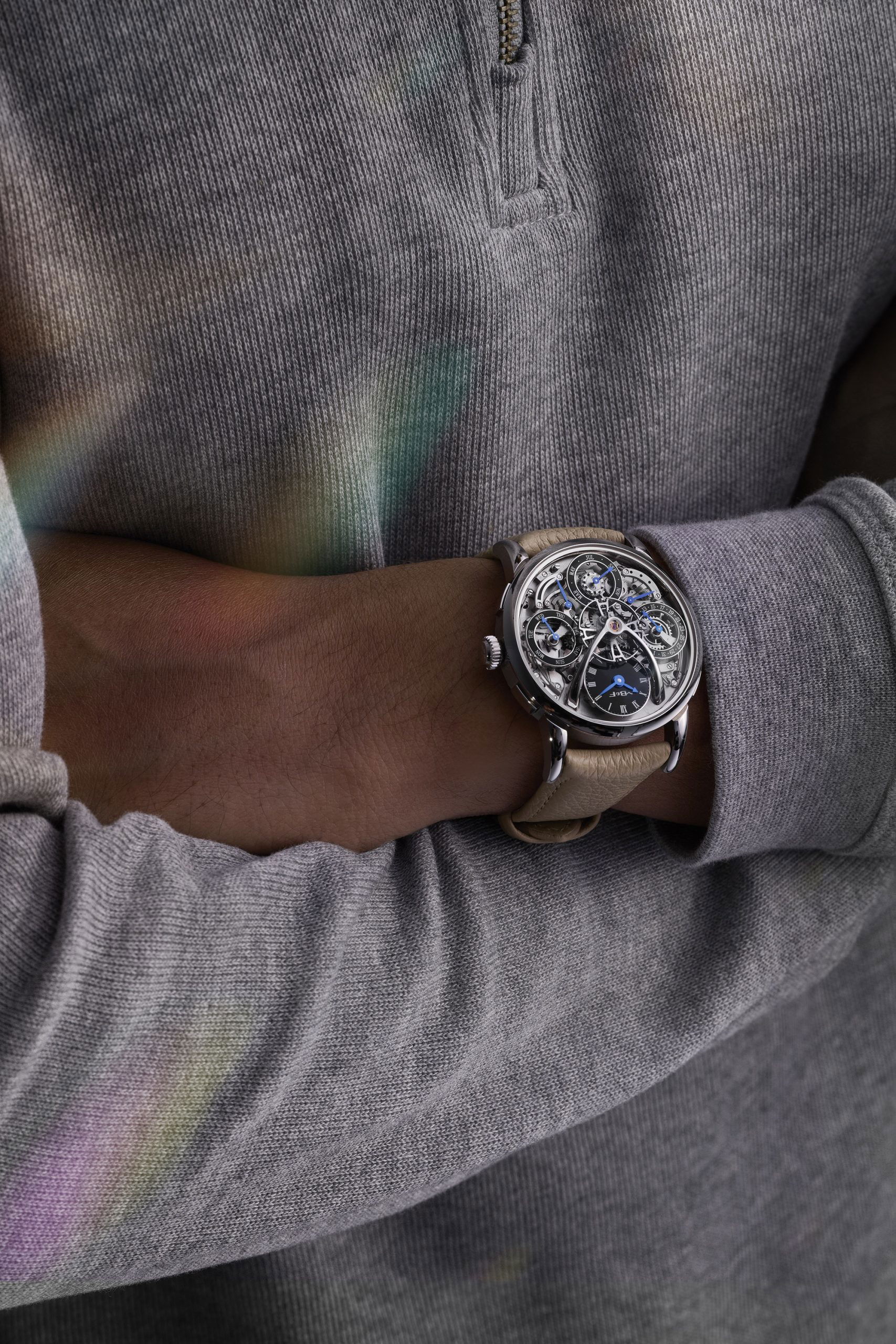 This anniversary edition shows off McDonnell’s intricate movement with a bold new look: extended lugs paired with a black, silver, and blue color scheme, limited to just 20 pieces.