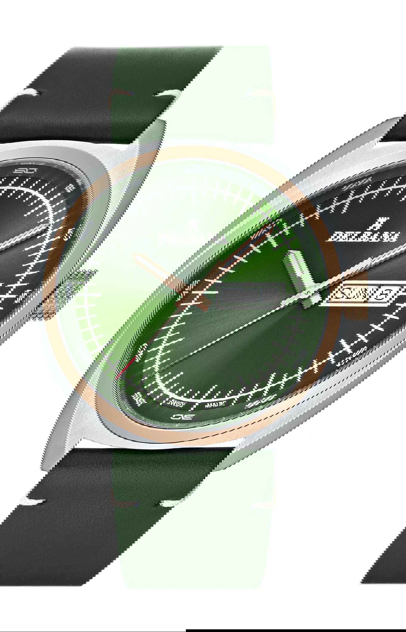 Delbana takes pride in using premium materials for the Locarno collection. High-grade stainless steel cases with a yellow gold plated bezel ring ensure durability and longevity, while sapphire crystal glass protects the watch face from scratches and provides exceptional clarity. The Locarno timepieces are matched with a leather strap with a pin buckle.