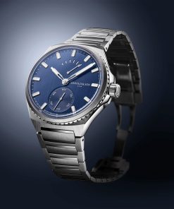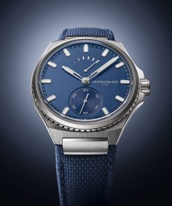 Available in three dial variations – Kingsand gold, ocean blue, and fern green, reflecting Cornwall’s coastal hues – it captures the essence of Arnold’s birthplace. The timepiece boasts an ergonomic design, a seamless blend of curves, and polished surfaces, ensuring both comfort and style.
