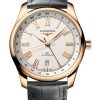 In January 2024, the Longines Master Collection GMT triumphantly returns with two new captivating limited editions in 18ct yellow and rose gold, each limited to 500 pieces. These timepieces, embodying sophistication and functionality, enrich the Longines portfolio with their unique blend of luxury and refined design. At their core, the Longines L.844.5 GMT movement features a 24-hour hand and GMT functionality, visible through a sapphire crystal case back. The watches’ frosted silver dials, adorned with elegant elongated Roman numerals, present a timeless and retro aesthetic.