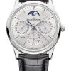 The Calibre 948 movement, composed of 388 components, is designed for easy synchronization of global time zones via the crown. The Master Grande Tradition Calibre 948 is fitted with a dark green alligator strap.