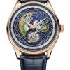 Jaeger-LeCoultre revisits one of its most poetic complications with a fresh take on the Master Hybris Artistica Calibre 945. Limited to just five pieces, the new model pairs a deep midnight-blue enamel dial with an 18K pink gold case, bringing a warm glow to an already celestial composition. It’s a showcase of the Manufacture’s dual talents: artistic craftsmanship through its Métiers Rares™ atelier, and mechanical virtuosity through the legendary Calibre 945, a movement combining a real-time star chart, minute repeater, and the distinctive flying Cosmotourbillon.