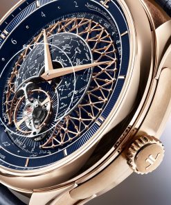 Completing the performance is Jaeger-LeCoultre’s hallmark chiming expertise. The minute repeater, enhanced with cathedral gongs and trébuchet hammers, delivers a clear, resonant sound. Elegant, intricate, and unmistakably Grande Maison, the Calibre 945 remains one of the most complete expressions of celestial watchmaking today.
