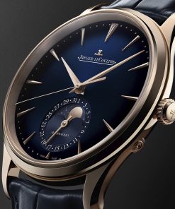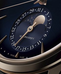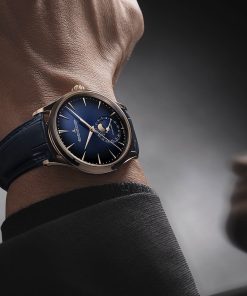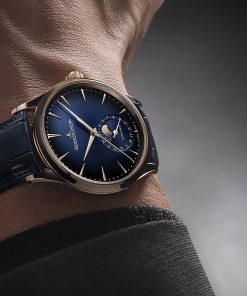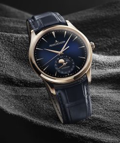 The 39mm case is well-balanced with a slim profile and a mix of polished and brushed surfaces. The watch is powered by the in-house Calibre 925, providing a 70-hour power reserve, and features an 18-carat pink gold oscillating weight. Overall, this watch marries sophisticated craftsmanship with a modern design, elevating the Master Ultra Thin Moon to a new level of contemporary elegance.