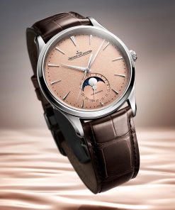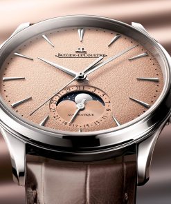 Jaeger-LeCoultre enriches the Master Ultra Thin Moon with a new copper-grained dial, subtle in texture, warm in tone, and beautifully contrasted by the polished steel case. The surface shifts from pale, powdery copper to richer shades as the light moves, giving the watch a contemporary sensibility without disturbing the line’s timeless restraint.