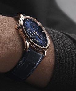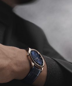 Completing the design, the Master Ultra Thin Power Reserve is presented on a blue alligator strap, which can be easily interchanged.