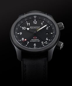 The Bremont MBIII Stealth Limited Edition is a special release limited to 50 pieces, reflecting a unique collaboration with Martin-Baker, a renowned ejection seat manufacturer. This watch is notable for its GMT functionality, catering to individuals who operate across multiple time zones. It features a chronometer-rated movement with a 50-hour power reserve.