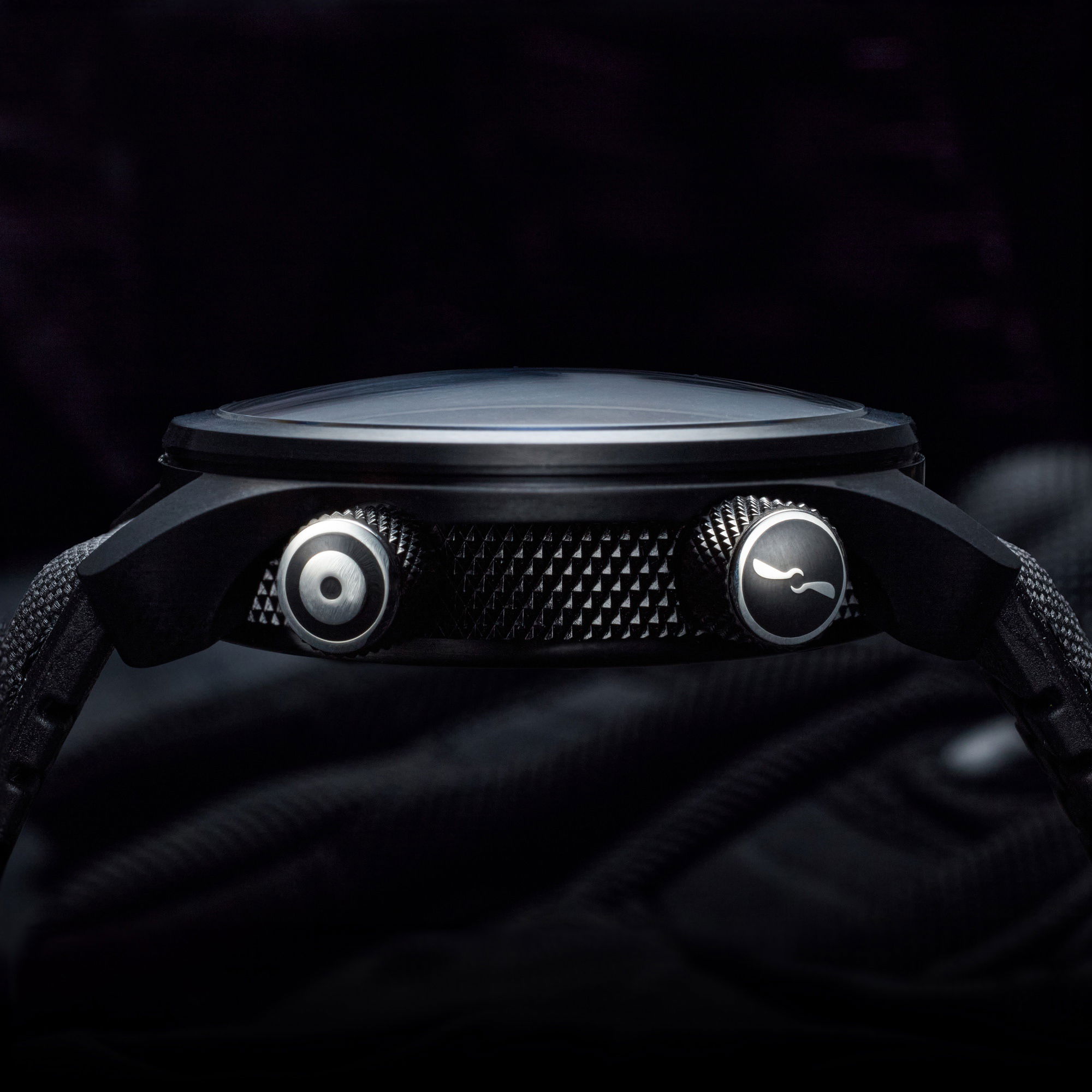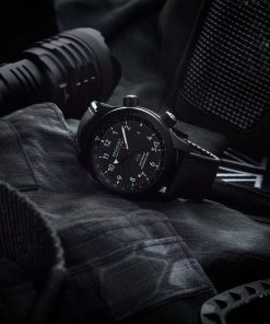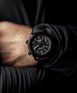 Designed with a military-inspired aesthetic, the MBIII Stealth stands out with its DLC coated stainless steel 43mm Trip-Tick case and a ‘Jet’ colored knurled aluminum barrel. This design choice is inspired by elements found in Martin-Baker ejection seats.