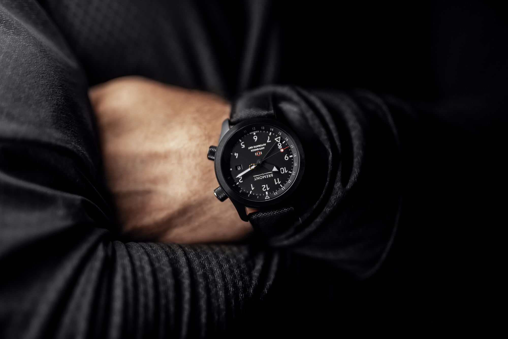 Completing the design is the black-on-black Chalgrove strap, named after the Martin-Baker site in Oxfordshire. This high-performance strap blends rubber and leather, providing durability and moisture resistance. The MBIII Stealth Limited Edition is a testament to tactical functionality and technical excellence, embodying the spirit of military precision and innovation.