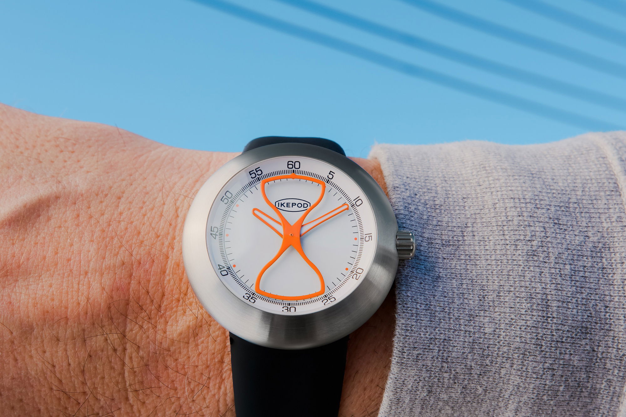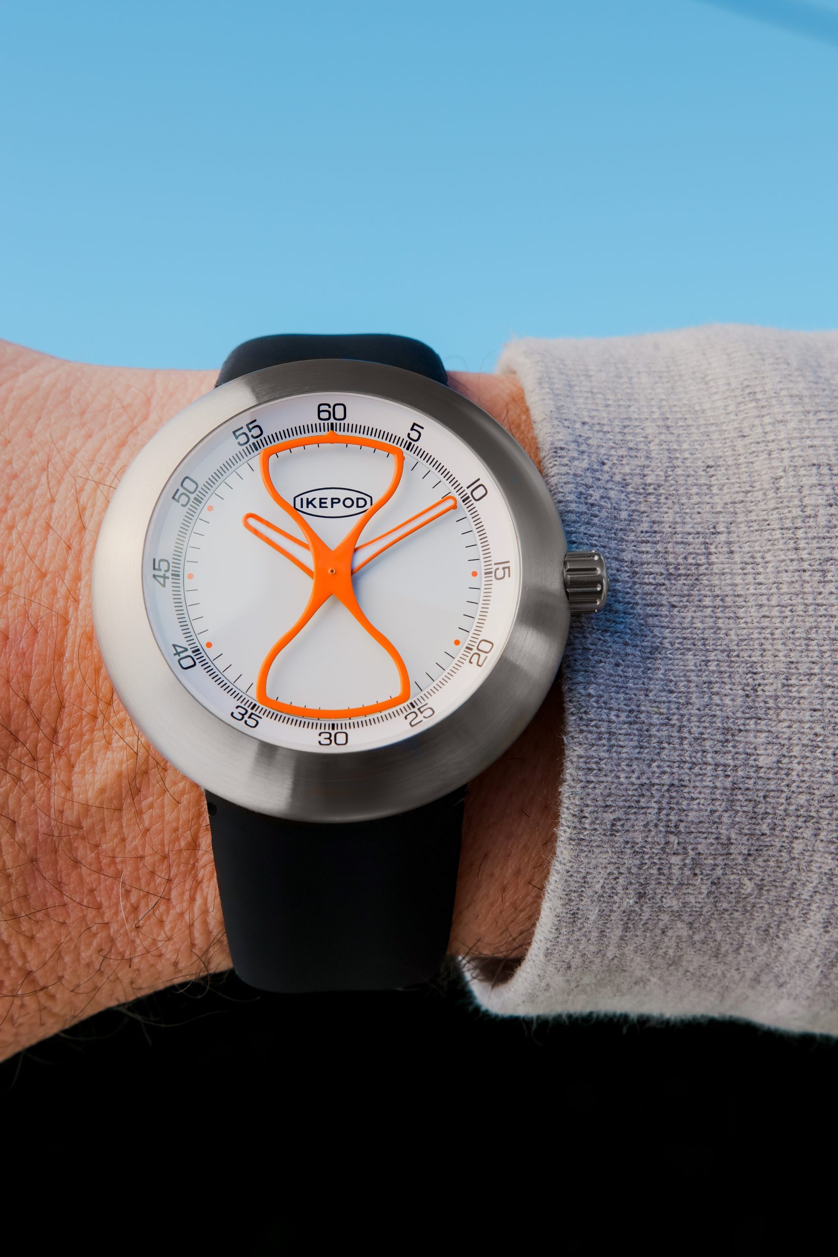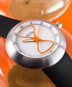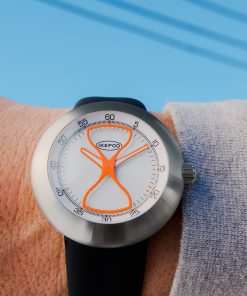 The Megapod Hour Glass collection celebrates and concludes the Megapod series, which was initially launched in 2020. This series updated the iconic Megapode watch with modern elements while paying homage to its original design. The limited edition Megapod Hour Glass, featuring an hourglass-shaped second hand, embodies the theme of the impermanence of time, a consistent motif in Ikepod’s design narrative. These watches come equipped with a Miyota 9039 movement, large hour and minute hands, a transparent back, and are available with silicone or optional steel straps.
