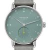 Nomos Glashütte’s Metro 33 watches, designed by Mark Braun, embody urban elegance and style, celebrating a blend of functionality and design. Inspired by cityscapes, each watch tells a distinct city story, using colors and materials that mirror elements like skyscrapers, red brick buildings, and city parks. For instance, the watches use silver to reflect skyscrapers, muted red to evoke red brick buildings, and sage to symbolize city parks.