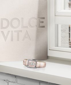 The Mini DolceVita collection offers a variety of color options and configurations, including models with diamonds and Roman or Cosmo dials. The straps are color-matched to the dials, creating an elegant contrast. Some models come with stainless steel bracelets, while others feature stylish black or red leather straps. Each Mini DolceVita watch celebrates elegance and the Italian sweet life, combining heritage with contemporary design for dynamic, spirited women.