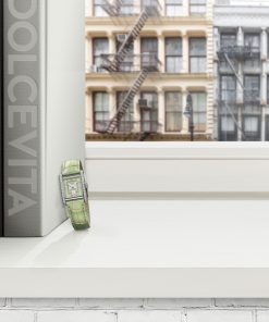 The Mini DolceVita collection offers a variety of color options and configurations, including models with diamonds and Roman or Cosmo dials. The straps are color-matched to the dials, creating an elegant contrast. Some models come with stainless steel bracelets, while others feature stylish black or red leather straps. Each Mini DolceVita watch celebrates elegance and the Italian sweet life, combining heritage with contemporary design for dynamic, spirited women.